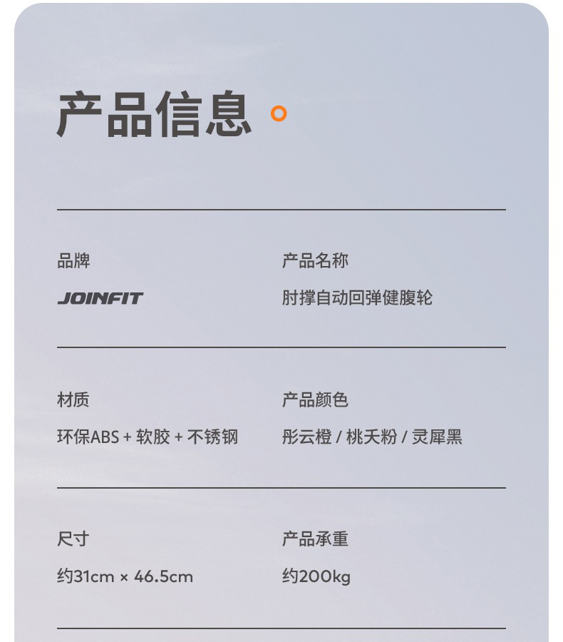 JOINFIT肘撑健腹轮 自动回弹卷腹轮